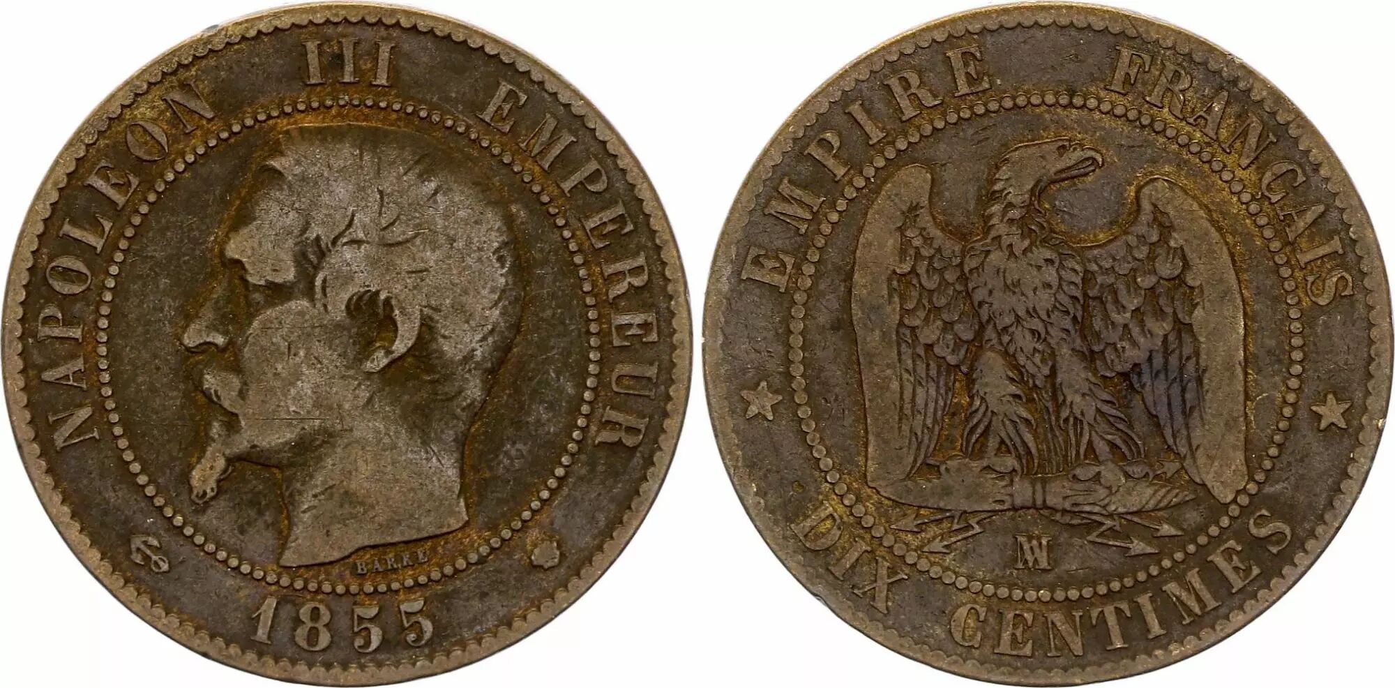 Pièce France 10 Centimes Napoléon III Tête nue - 1855 MA Marseille