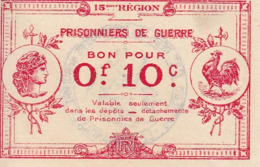 Billet France 10 Centimes - Prisionniers de guerre - 15ème région - Tampon au verso