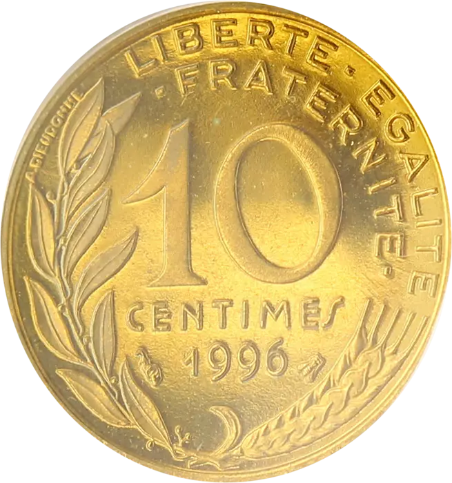10 Centimes Proof 1996 FranceMarianneBronze-Aluminium - 3 g - Ø 20 mmProof quality - 5319 copiesFrom Proof box - delivered in capsule