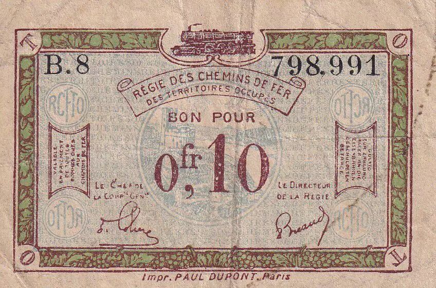 Home > > France 10 Centimes Regie des chemins de Fer - 1923 - Serial B.8 - F - R.2