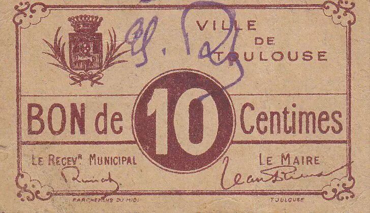 Banknote France 10 centimes Toulouse City