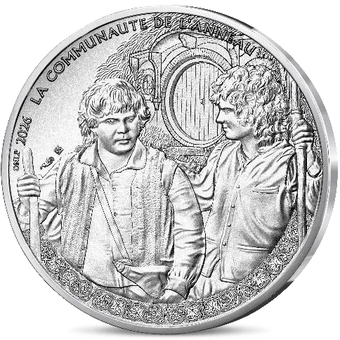 Le design de cette pièce met en scène Frodon Sacquet et Sam Gamegie lors de leur départ de la Comté. Cette illustration évoque le moment où les deux personnages quittent leur foyer pour entreprendre un voyage périlleux, motivés par la mission de détruire l'Anneau Unique. Elle souligne également le lien d'amitié qui unit les deux compagnons, confrontés ensemble à une tâche ardue. Le choix de représenter leur départ de la Comté symbolise la fin d'une ère d'innocence et le début d'une quête pleine d'incertitudes, inspirée de l'univers du Seigneur des Anneaux.
