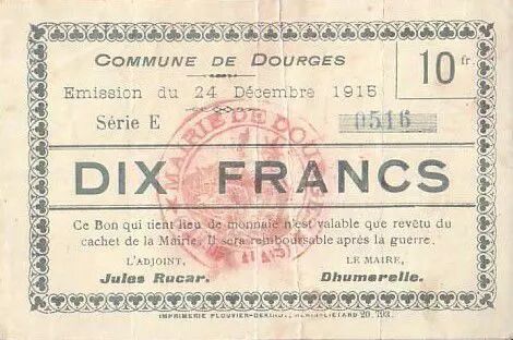 Les Billets des Communes et des Villes (Pir. 62.408)