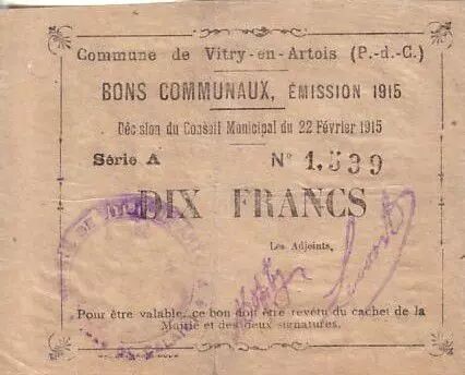 Billet France 10 F Vitry-En-Artois