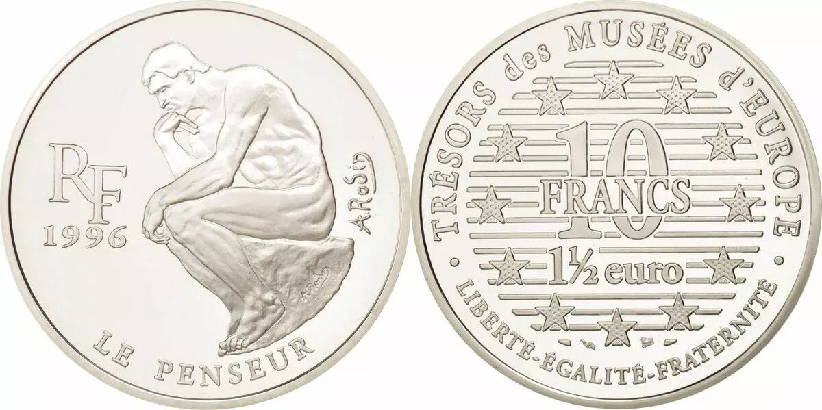Pièce France 10 Francs - 1,50 euros - Le Penseur de Rodin - 1996 - Argent - avec certificat
