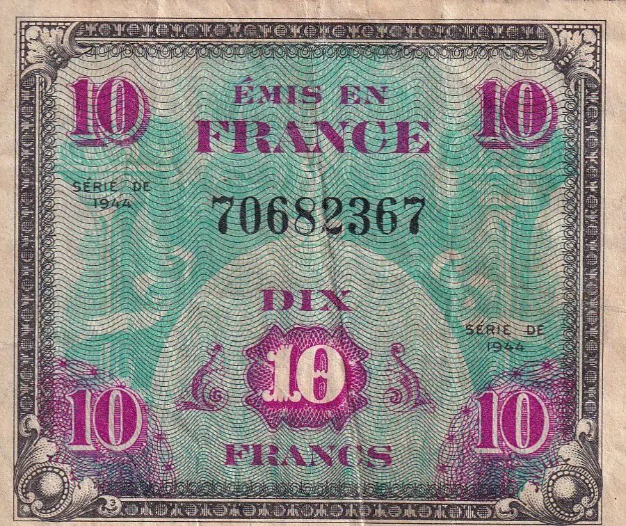 Home > > France 10 Francs - Allied Military Currency - 1944 - Without Serial - P.116