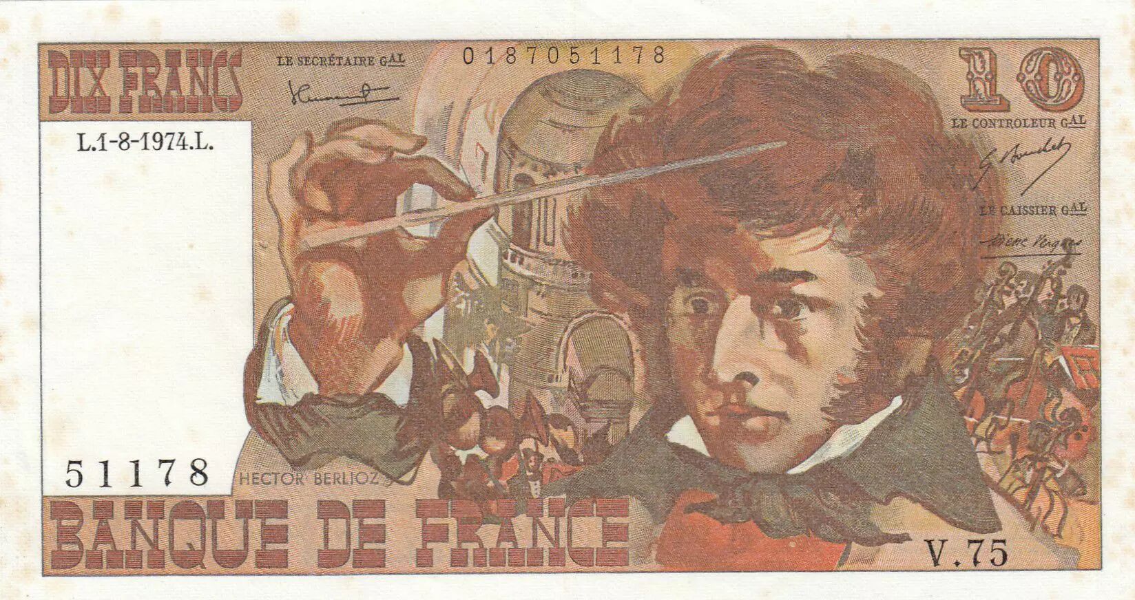 Billet France 10 Francs Berlioz - 01-08-1974 - Série V.75