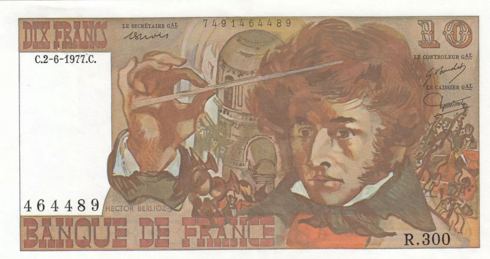 Banknote France 10 Francs - Berlioz - 02-06-1977 - Serial R.300