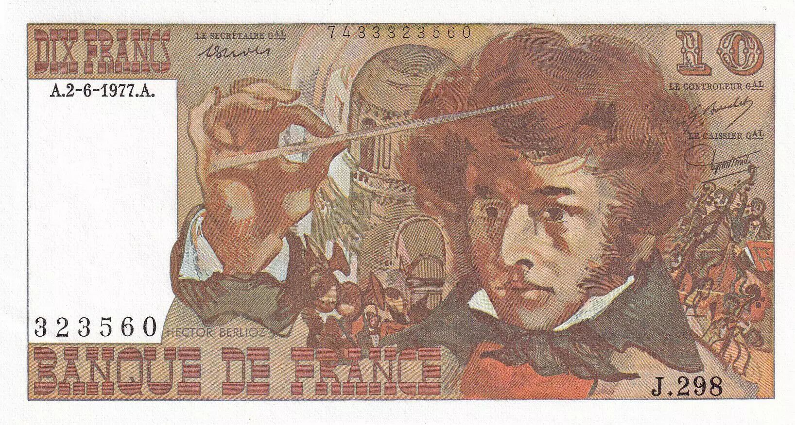 Accueil > Billets Français > Billets Banque de France > Billets 10 Francs > Berlioz type 1972 (1972-1978) > France 10 Francs - Berlioz - 02-06-1977 - Série J.298 - F.63.22