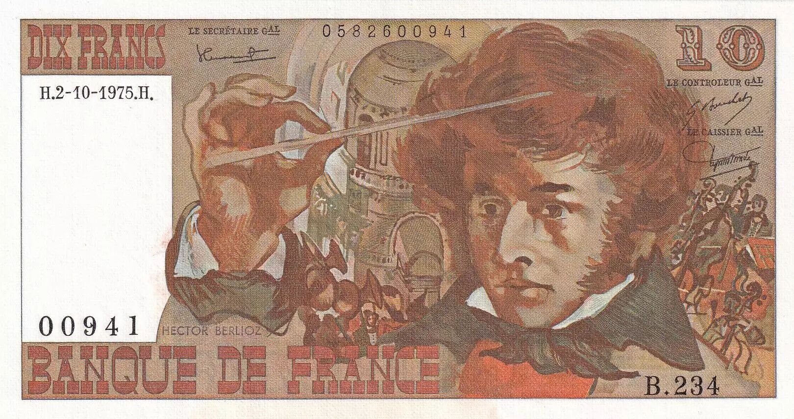 Banknote France 10 Francs - Berlioz - 02-10-1975 - Serial B.234