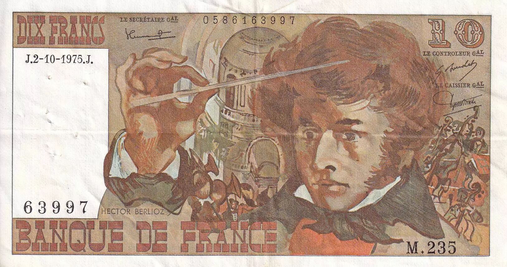Banknote France 10 Francs - Berlioz - 02-10-1975 - Serial M.235 - VF - P.150