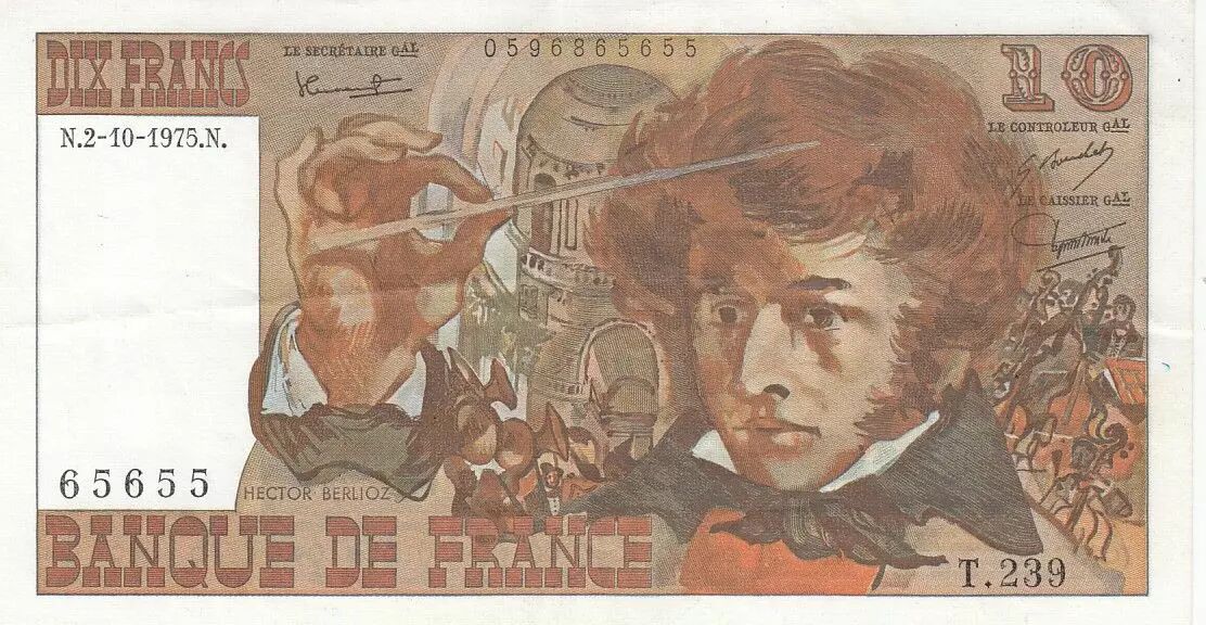 Banknote France 10 Francs - Berlioz - 02-10-1975 - Serial T.239