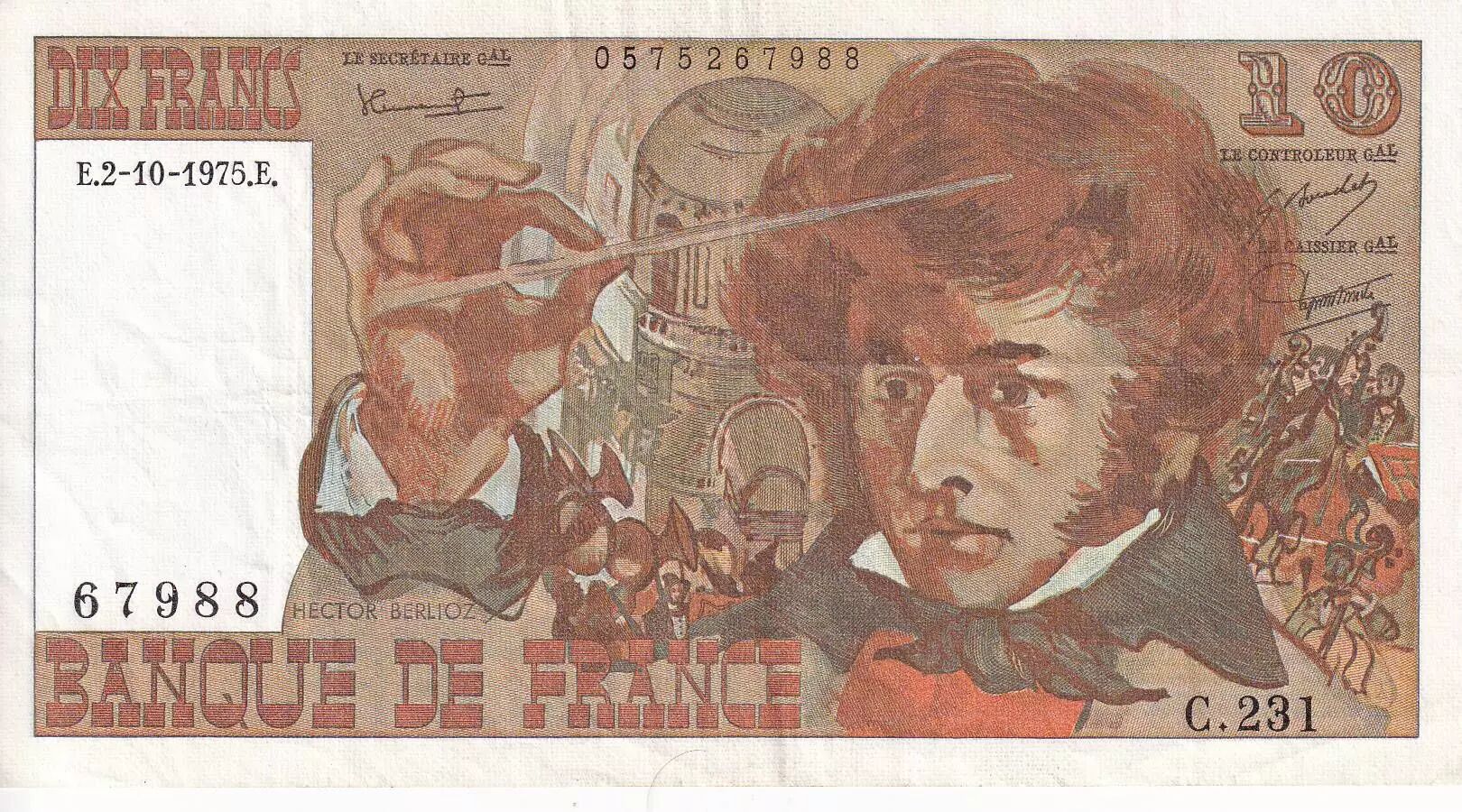 Accueil > Billets Français > Billets Banque de France > Billets 10 Francs > Berlioz type 1972 (1972-1978) > France 10 Francs - Berlioz - 02-10-1975 - Série C.231 - SUP - F.63.13