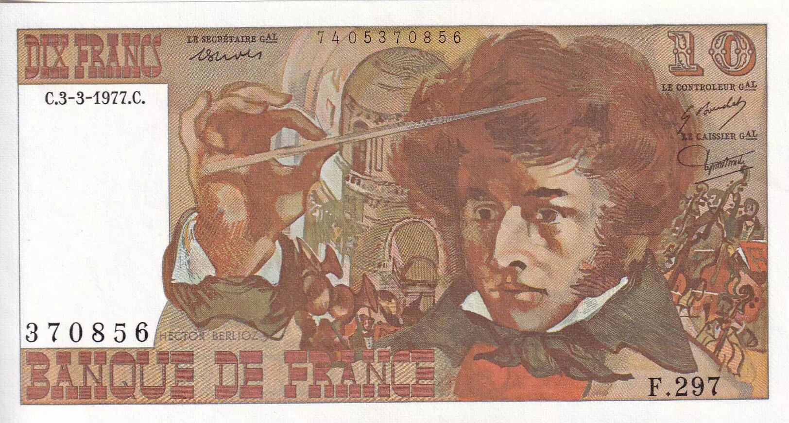 Banknote France 10 Francs - Berlioz - 03-03-1977 - Serial F.297 - P.150