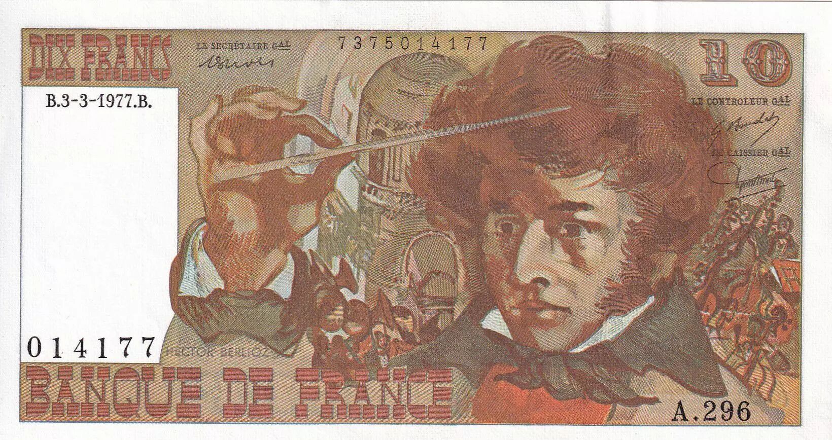 Accueil > Archivage > archivage-Billets Français > France 10 Francs - Berlioz - 03-03-1977 - Série A.296 - F.63.21