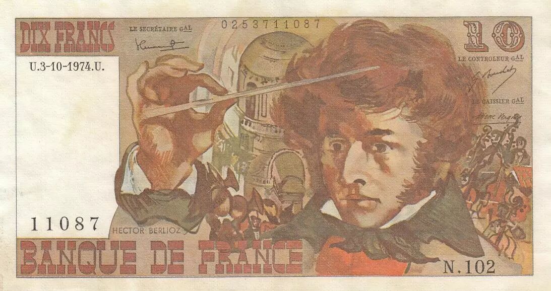 Banknote France 10 Francs - Berlioz - 03-10-1974 - Serial N.102
