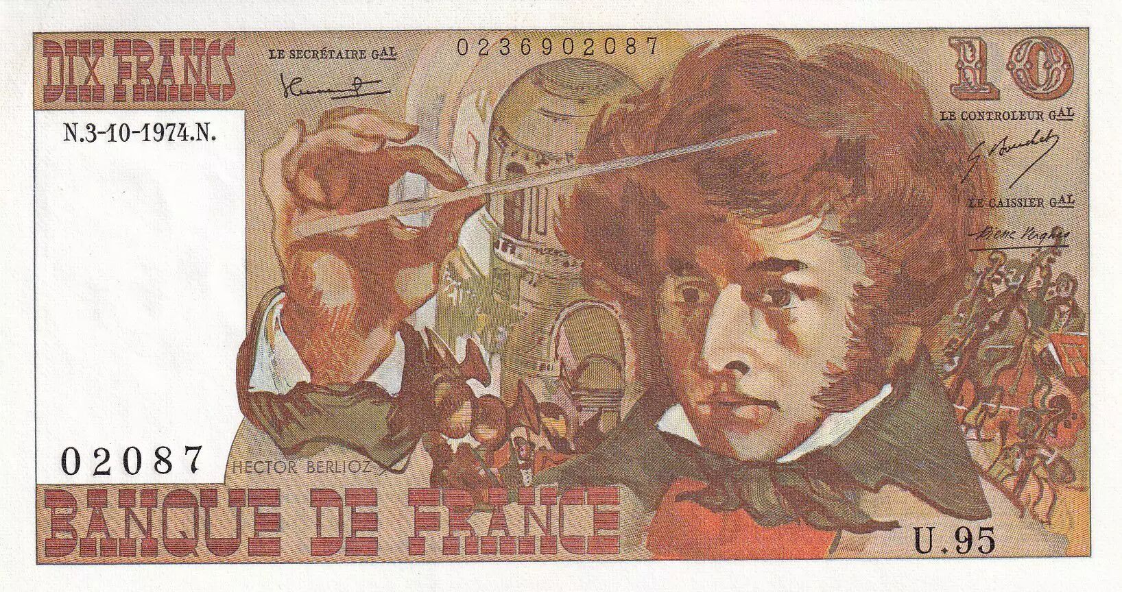 Banknote France 10 Francs - Berlioz - 03-10-1974 - Serial U.95 - P.150