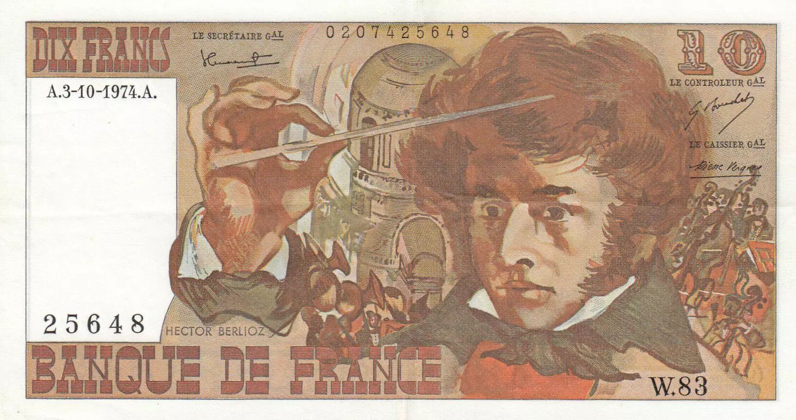 Home > > France 10 Francs Berlioz - 03-10-1974 - Serial W.83 - VF