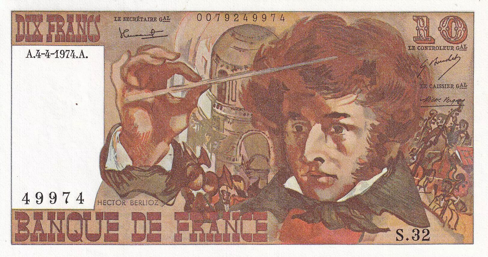 Banknote France 10 Francs - Berlioz - 04-04-1974 - Serial S.32 - P.150