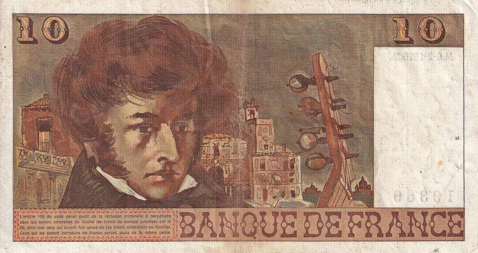 Home > French Banknotes > Bank of France Banknotes > 10 Francs > Berlioz Type 1972 (1972-1978) > France 10 Francs - Berlioz - 06-02-1975 - Serial E.139 - VF - P.150