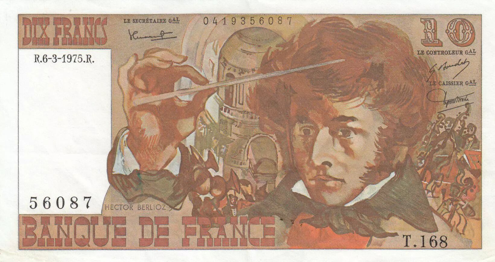Banknote France 10 Francs Berlioz - 06-03-1975 - Serial T.168