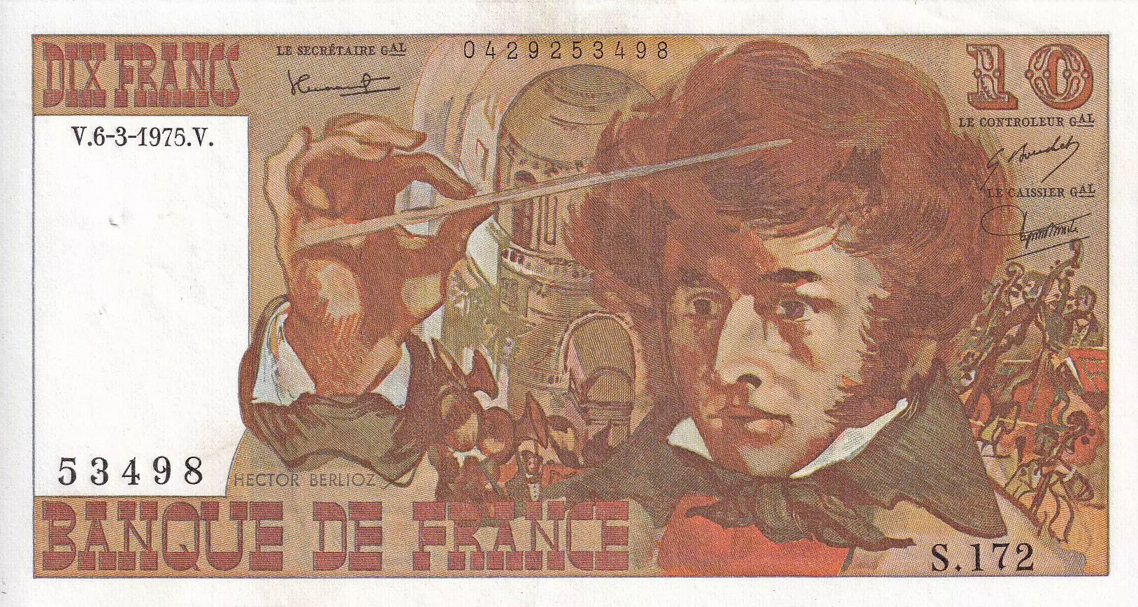 Accueil > Billets Français > Billets Banque de France > Billets 10 Francs > Berlioz type 1972 (1972-1978) > France 10 Francs - Berlioz - 06-03-1975 - Série S.172 - F.63.09