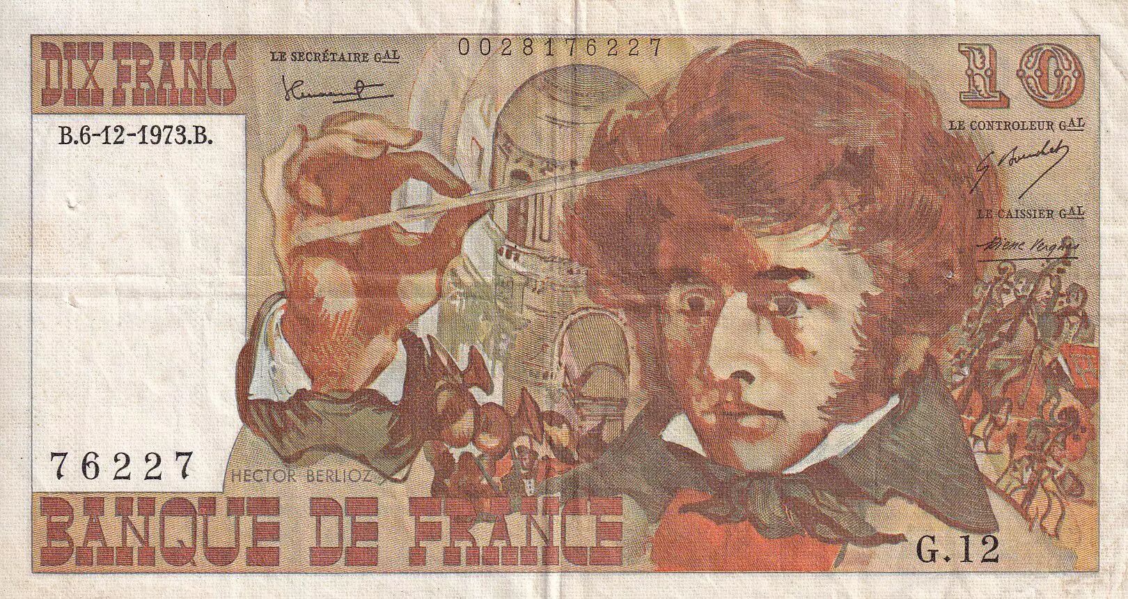 Banknote France 10 Francs - Berlioz - 06-12-1973 - Serial G.12 - P.150