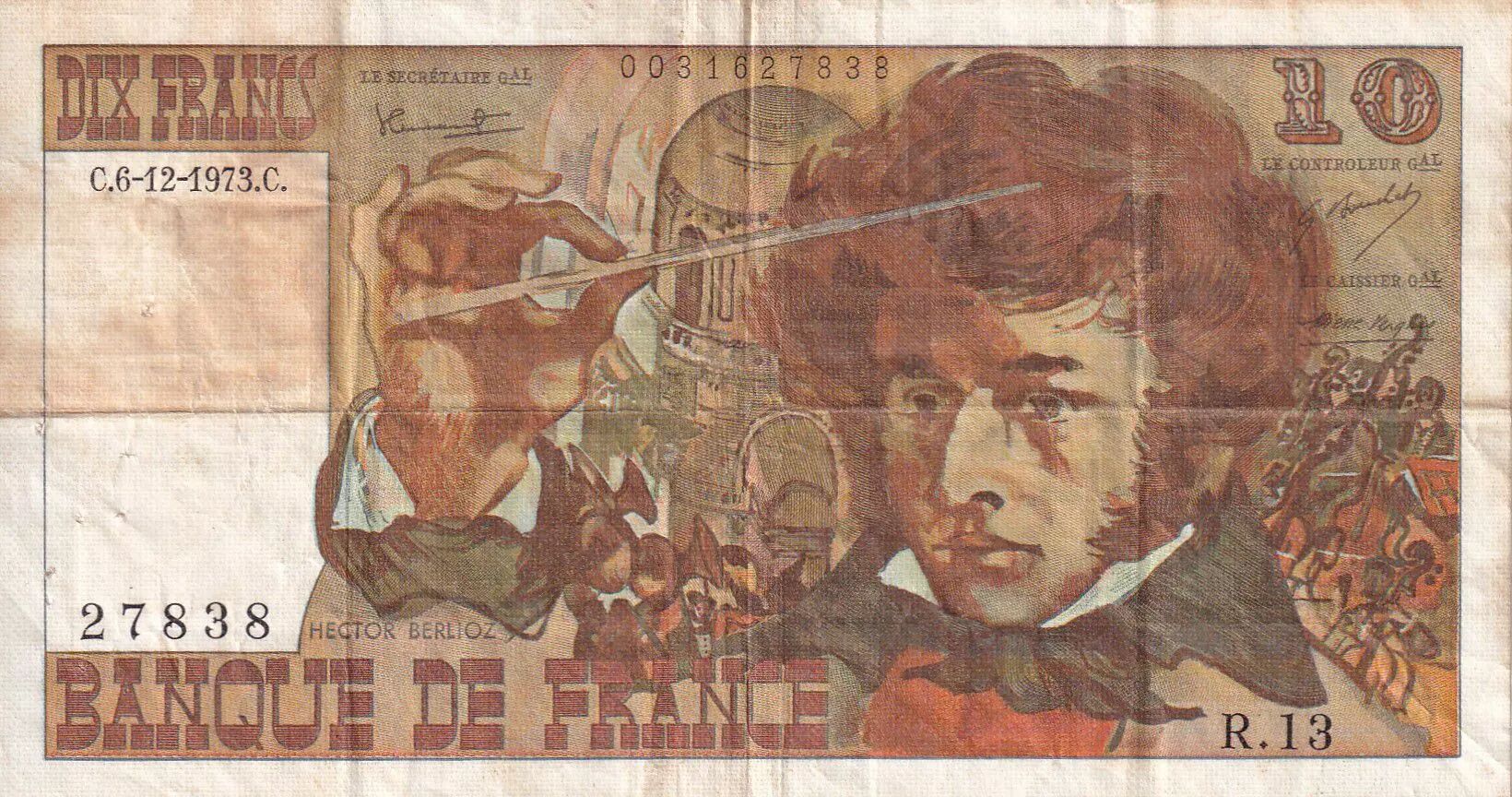 Banknote France 10 Francs - Berlioz - 06-12-1973 - Serial R.13 - P.150