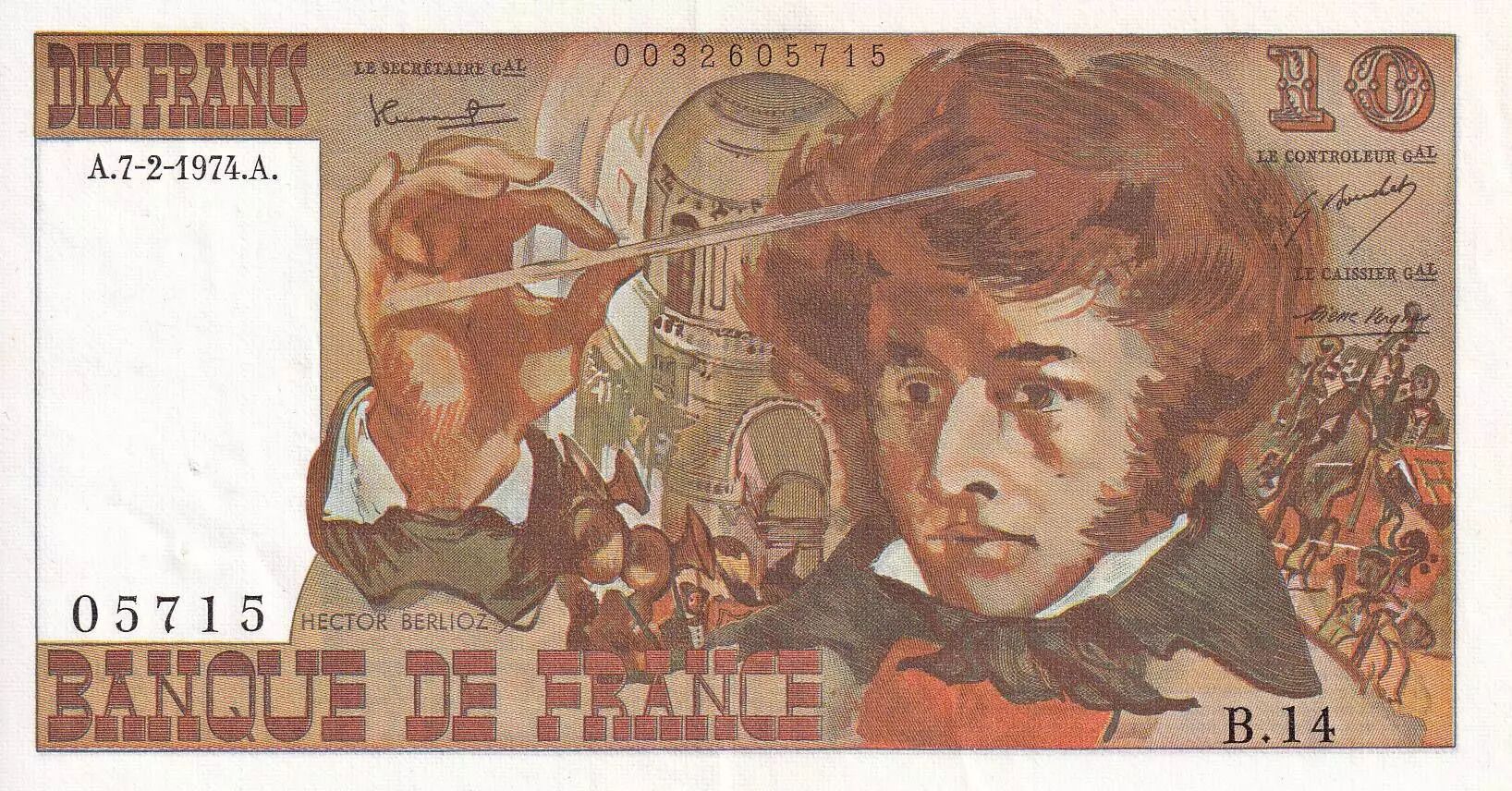 Home > French Banknotes > Bank of France Banknotes > 10 Francs > Berlioz Type 1972 (1972-1978) > France 10 Francs - Berlioz - 07-02-1974 - Serial B.14 - XF - P.150