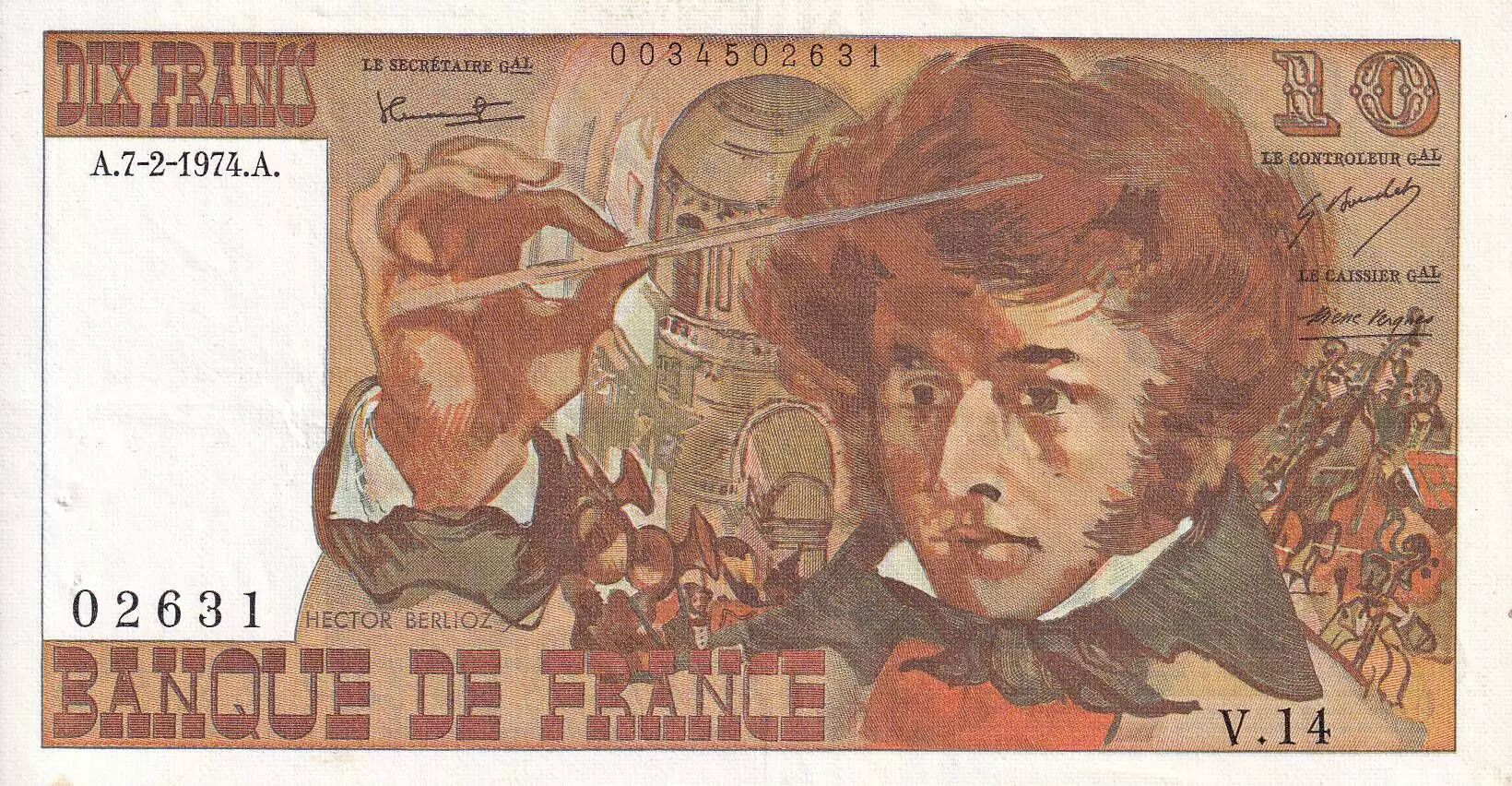 Banknote France 10 Francs - Berlioz - 07-02-1974 - Serial V.14 - XF - P.150