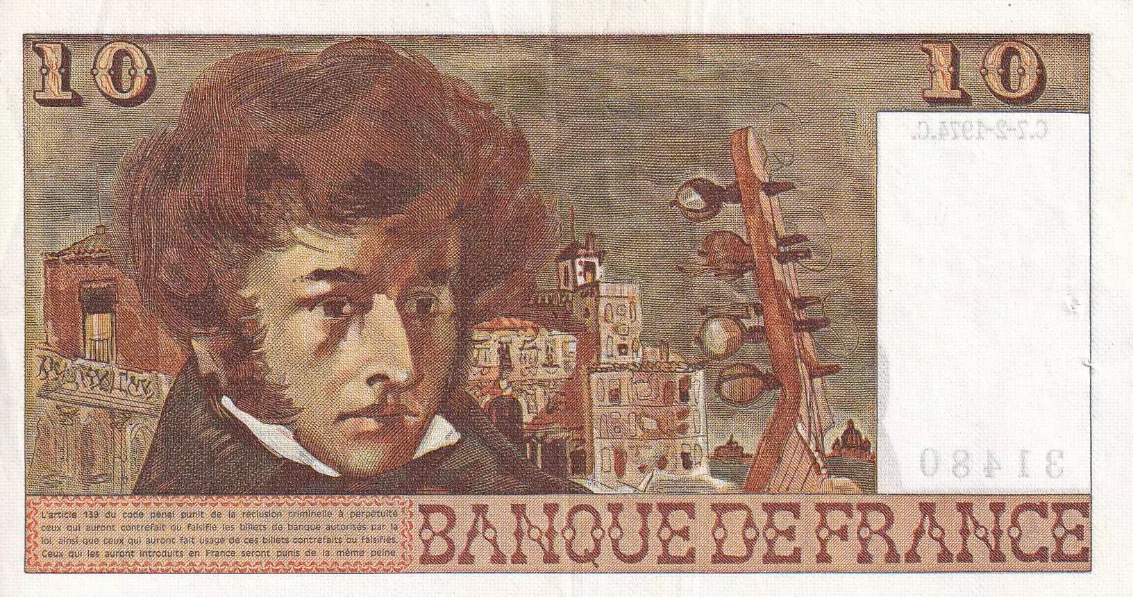Banknote France 10 Francs - Berlioz - 07-02-1974 - Serial V.16 - XF - P.150
