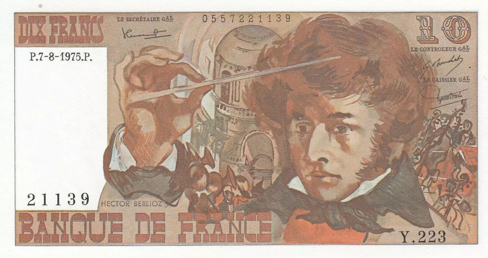 Banknote France 10 Francs - Berlioz - 07-08-1975 - Serial Y.223
