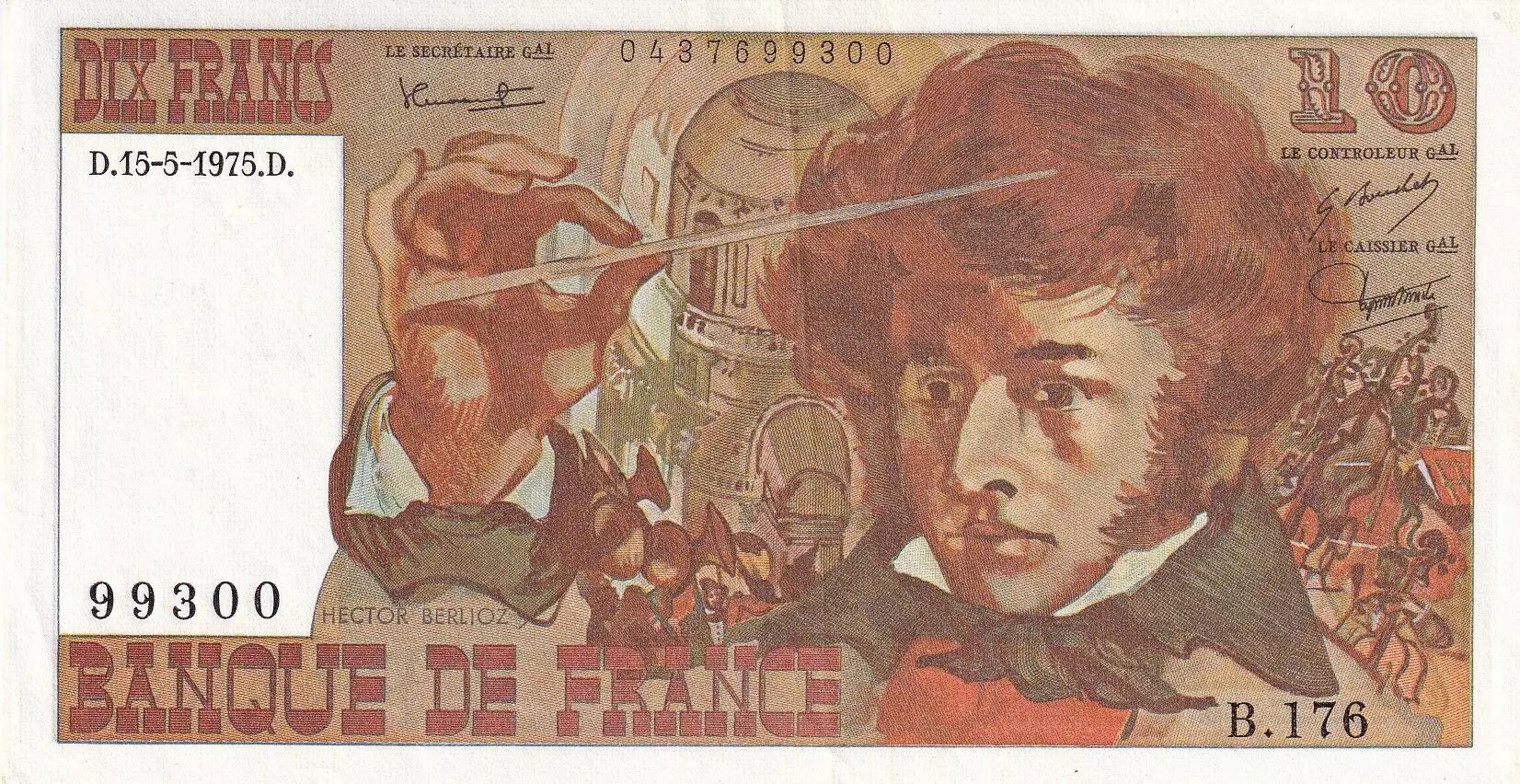 Banknote France 10 Francs - Berlioz - 15-05-1975 - Serial B.176 - P.150