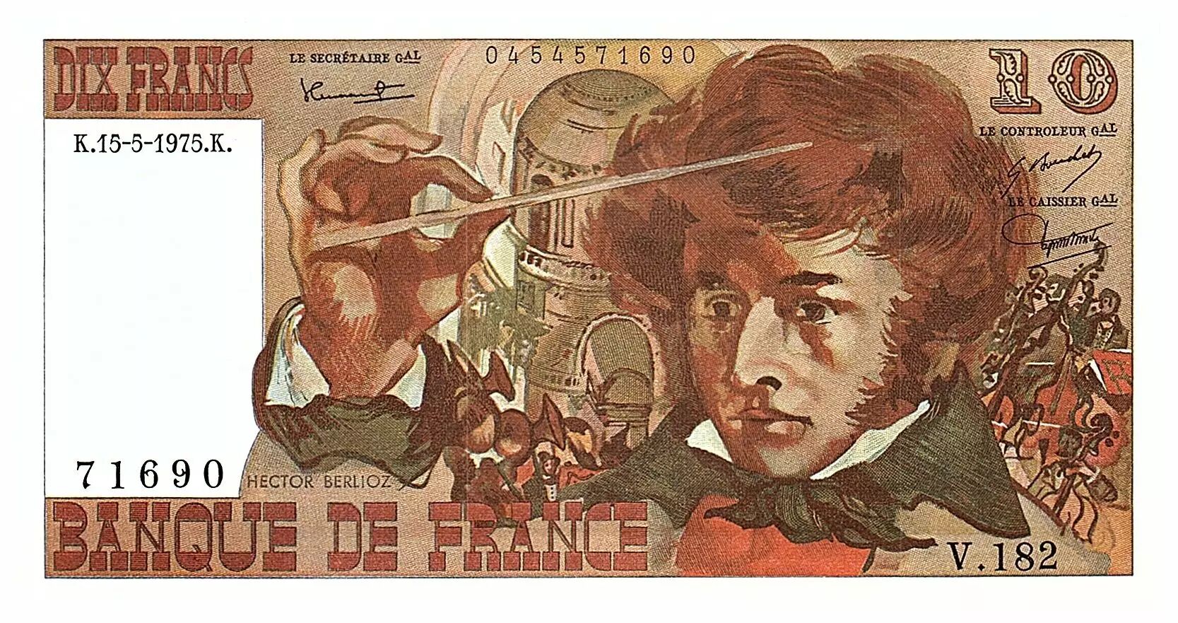 Accueil > Archivage > France 10 Francs Berlioz - 15.05.1975 - Série V.182 - Fay.63.10