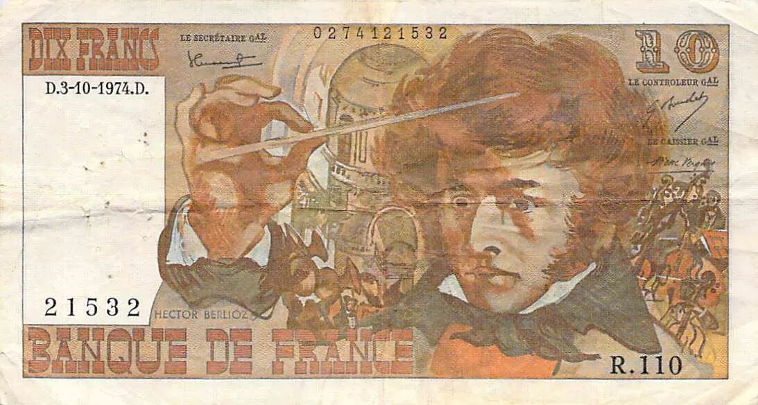 Home > French Banknotes > Bank of France Banknotes > 10 Francs > Berlioz Type 1972 (1972-1978) > France 10 Francs Berlioz - Various Years 1972-1978 - F to VF