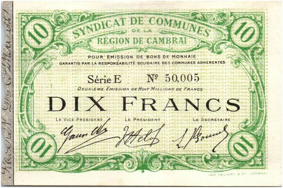 Billet France 10 Francs Cambrai Commune - 1916