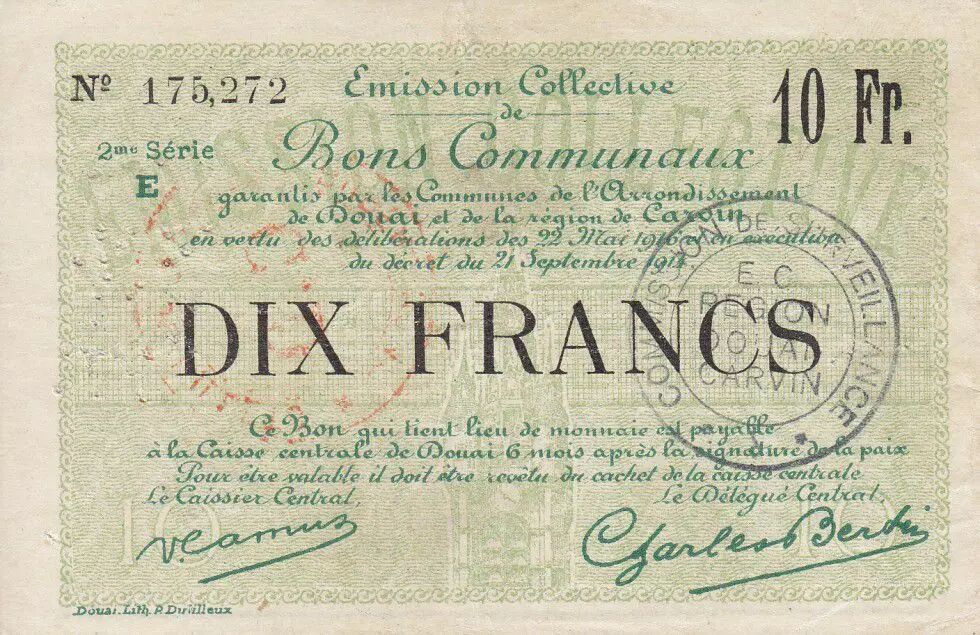 Banknote France 10 Francs Douai City - 1916