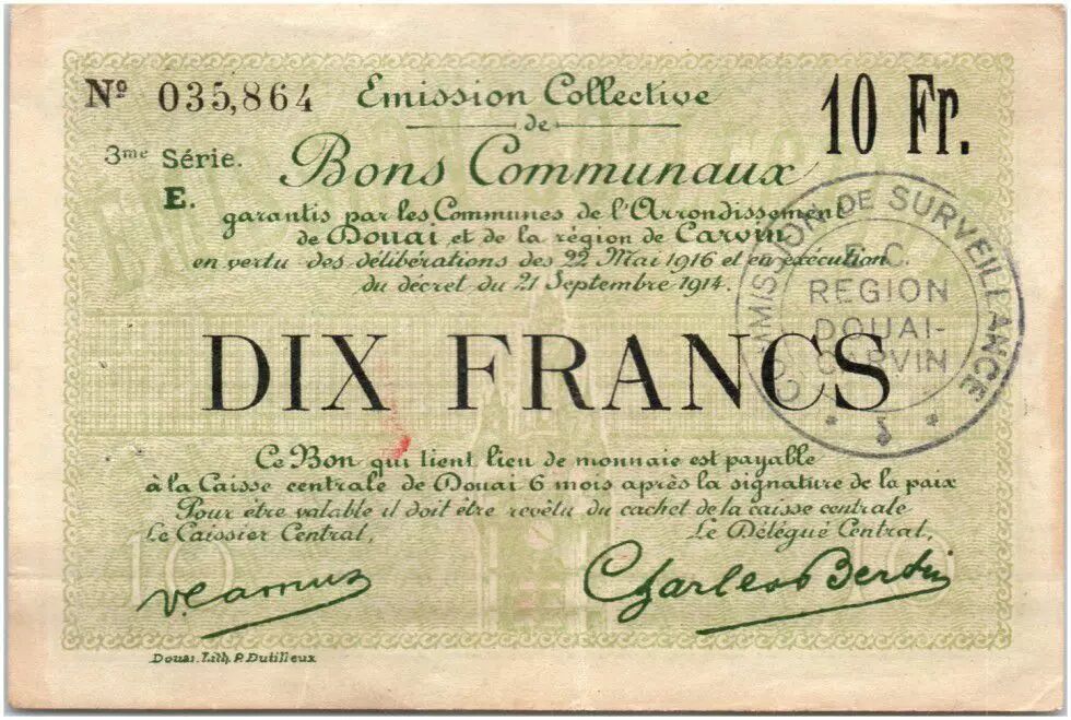 Banknote France 10 Francs Douai City - 1916