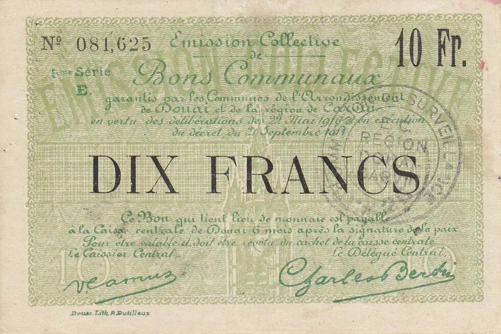 Billet France 10 Francs Douai Commune - 1916
