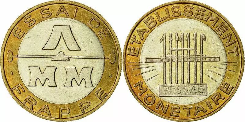 Ces essais de frappe ont été crées pour tester le poids et diamètre ainsi que le procédé de frappe des 10 francs génie de la bastille. La matrice qui à été adoptée est donc celle avec le bourrelet puisqu'on le retrouve sur les 10 franc