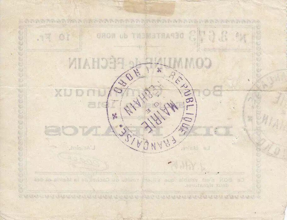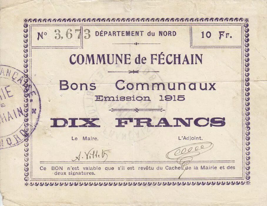 Accueil > Archivage > France 10 Francs Fechain Commune - 1915