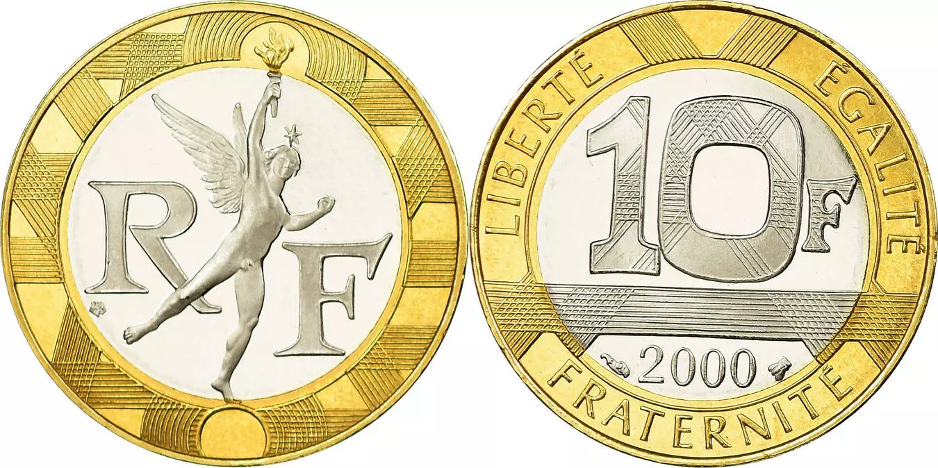 La valeur nominale de la pièce est de 10 francs, l'ancienne monnaie française avant l'adoption de l'euro. L'année d'émission, 2000, marque une période de transition monétaire en Europe. L'alliage de la pièce est bimétallique, combinant deux métaux différents pour créer un contraste visuel et augmenter la sécurité contre la contrefaçon.