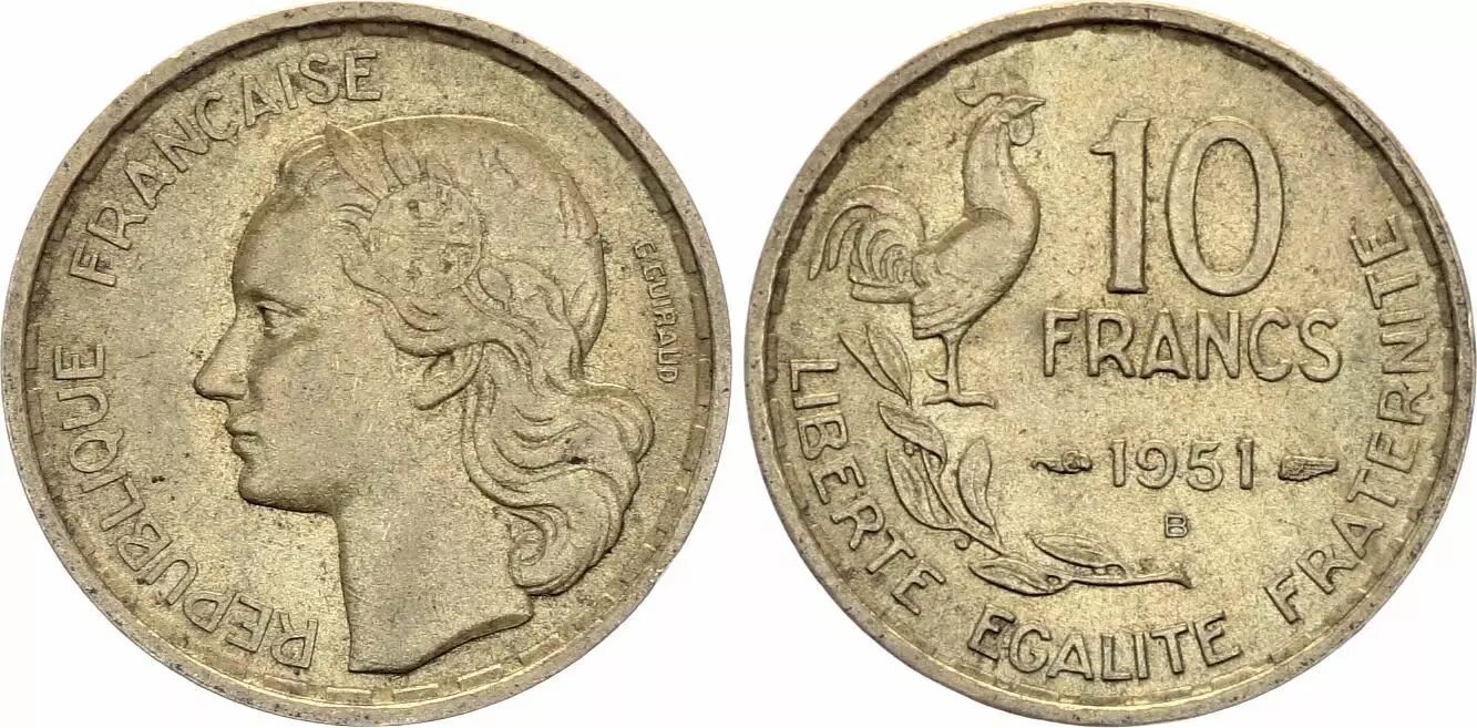 Home > French coins (470 à 2002) > Modern Currencies (1789 to 2002) > 10 Francs > France 10 Francs Guiraud - 1951 B Beaumont - Le Roger