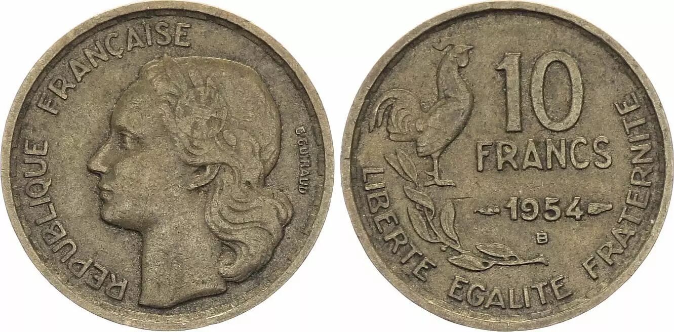 Home > French coins (470 à 2002) > Modern Currencies (1789 to 2002) > 10 Francs > France 10 Francs Guiraud - 1954 B Beaumont - Le Roger