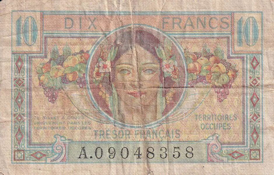 Banknote France 10 Francs - Head of woman - 1947 - VG+ - P.7