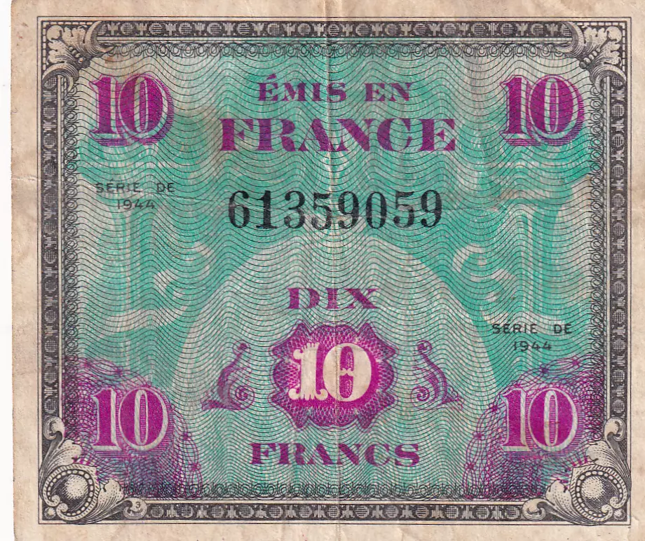 Accueil > Archivage > France 10 Francs Impr. américaine (drapeau) - 1944 Sans Série - TTB