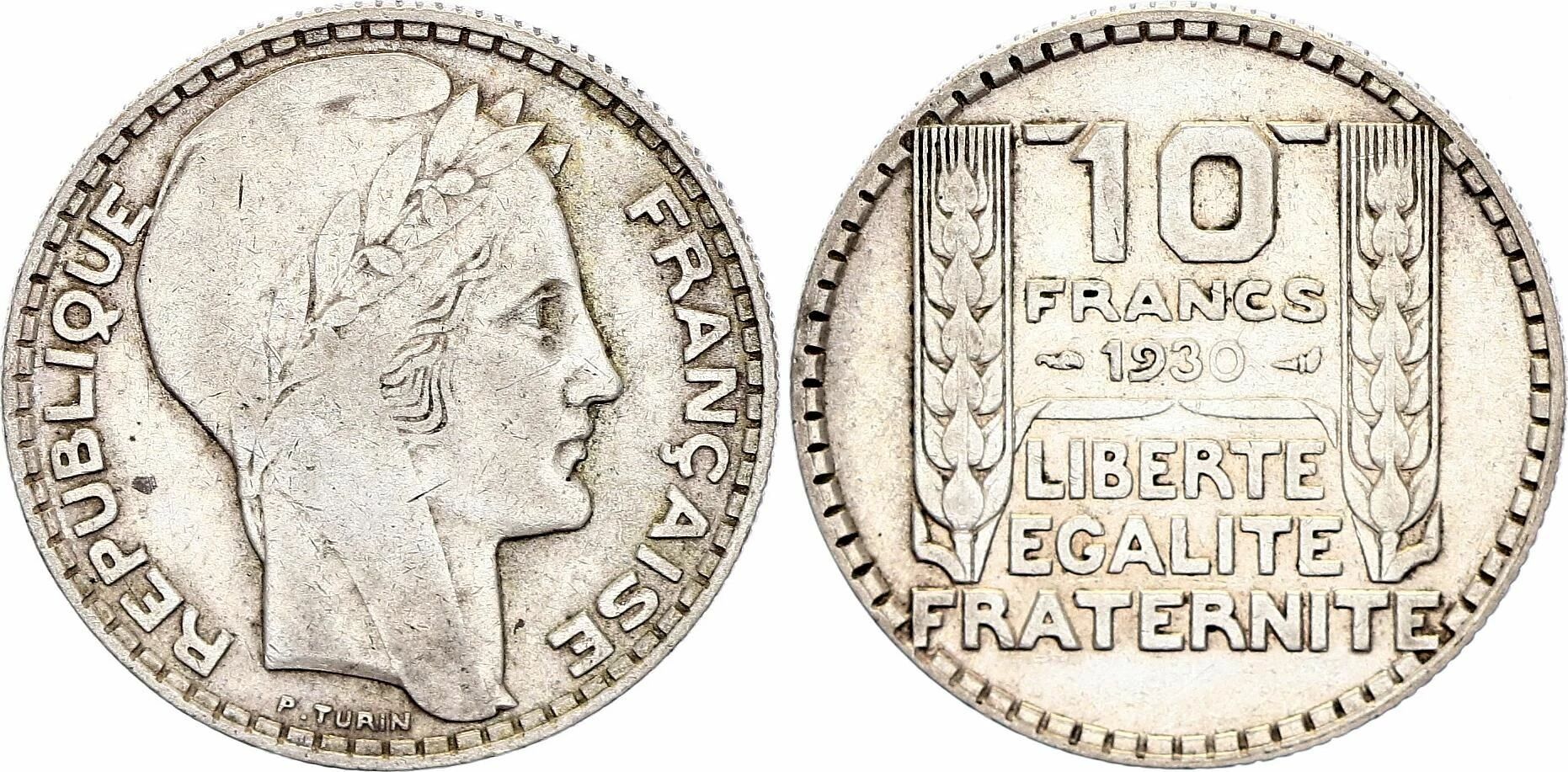 Coin France 10 Francs Laureate head - 1930 Silver