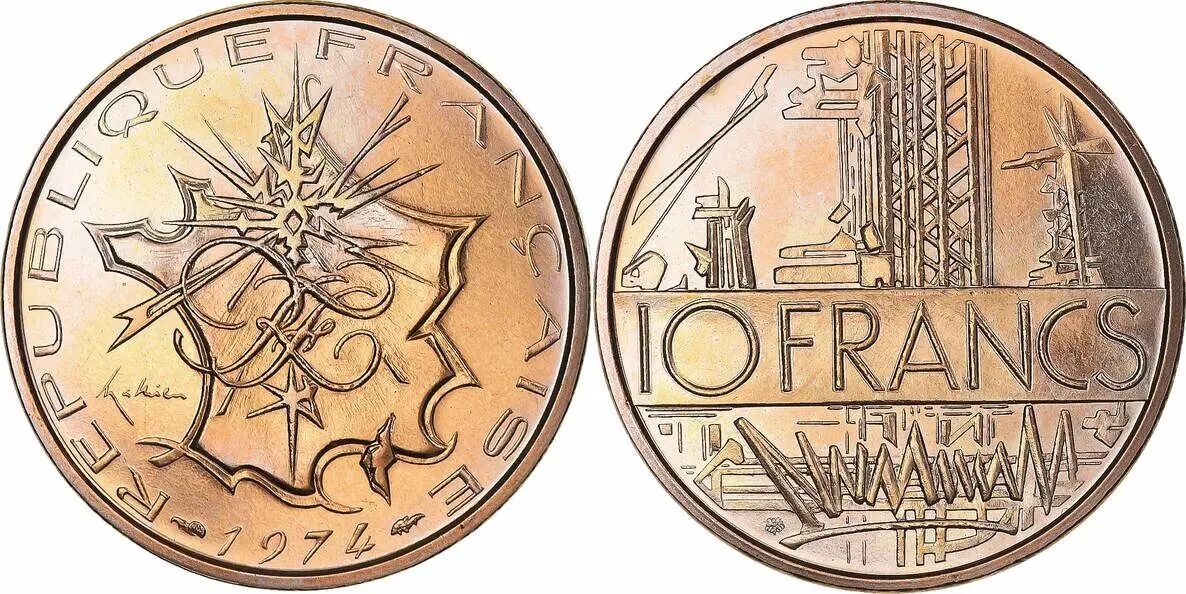 Coin France 10 Francs Mathieu - 1974 from UNC set