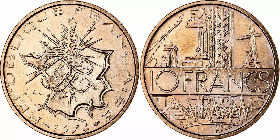 La pièce de 10 Francs Mathieu, frappée en France en 1974, est une pièce commémorative d'une valeur nominale de 10 francs. Elle est composée d'un alliage de cuivre, d'aluminium et de nickel, lui conférant une couleur et une durabilité distinctives. La pièce pèse 10 grammes et possède un diamètre de 26 millimètres.