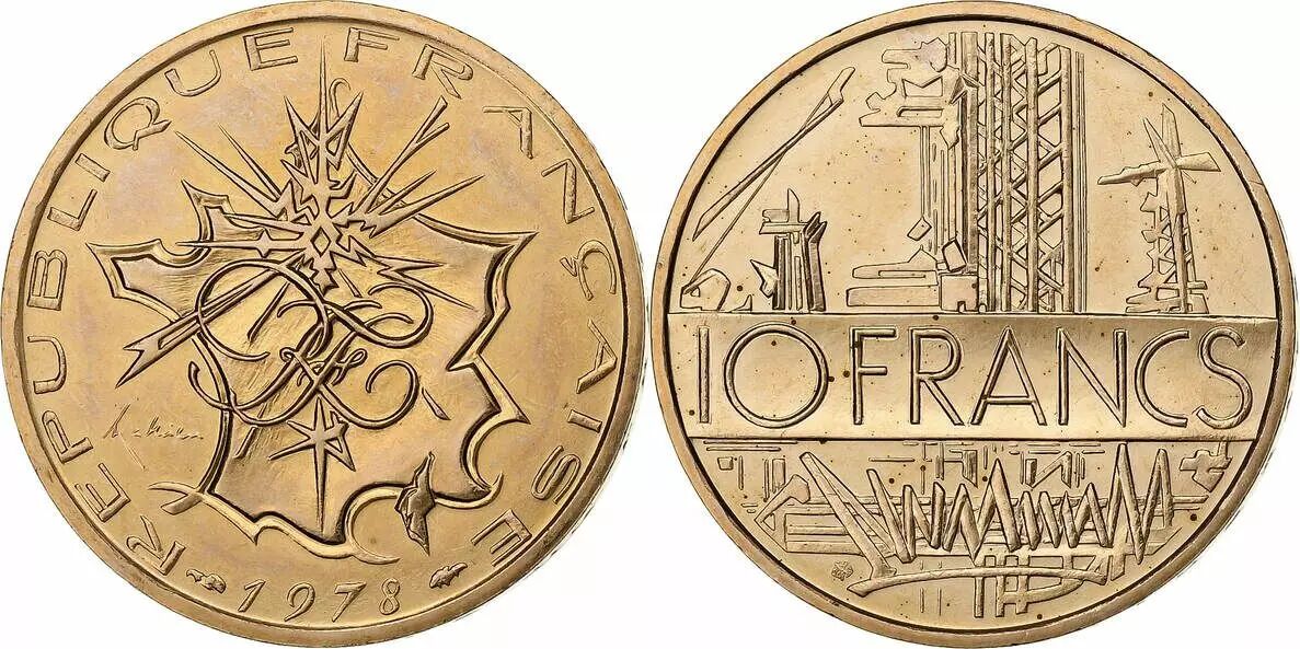 The 10 Francs Mathieu coin, minted in France in 1978, is a commemorative coin with a face value of 10 francs. It is made of an alloy of copper, aluminum, and nickel, giving it a specific color and physical properties. It weighs 10 grams and has a diameter of 26 millimeters.
